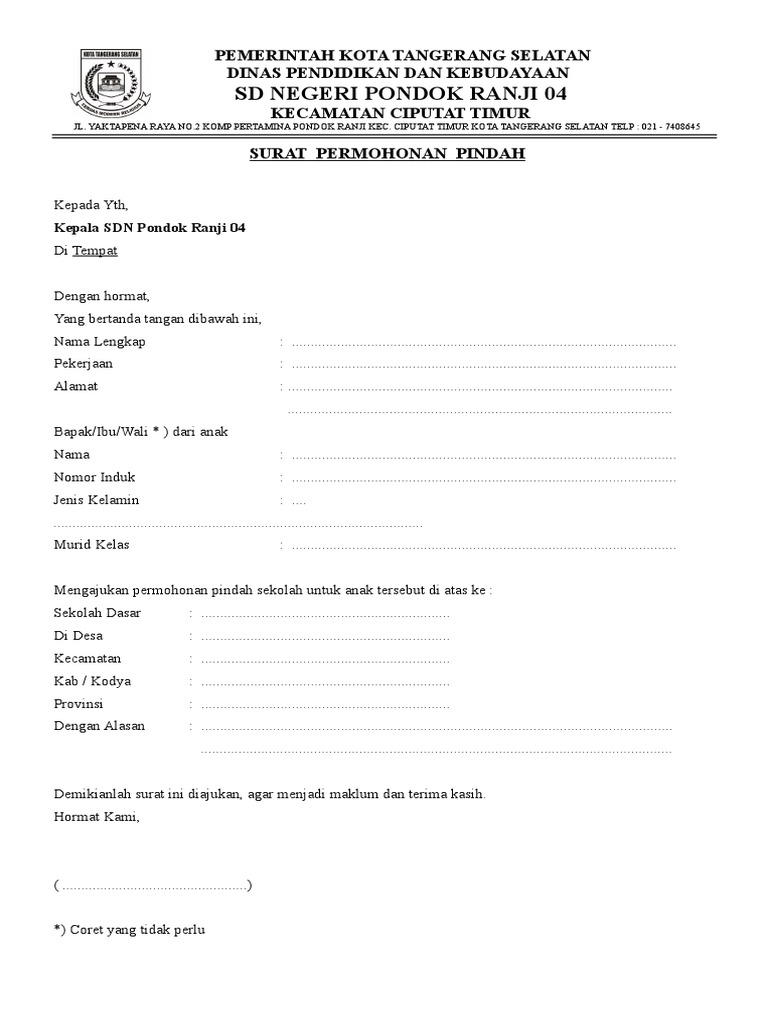 Contoh surat pindah sekolah anak tk. Kerangka surat ini hanya contoh kasar, yang bisa diubah atau dikembangkan sesuai keperluan. Dalam bahasa indonesia ataupun bahasa inggris tentunya kita sudah mengenal adanya surat , seperti yang kita ketahui surat terbagi menjadi dua bagian yaitu surat formal dan surat informal. Jika pada materi sebelumnya kita telah membahas mengenai beberapa surat dalam bahasa inggris, kali ini kita akan membahas hal yang sama, namun berbeda dengan tema yag sebelumnya. Surat merupakan suatu alat atau media komunikasi, meskipun saat ini surat sudah jarang sekali digunakan sebagai sebuah alat komunikasi, namun untuk sebuah perusahaan atau instansi formal, surat masih sangat digunakan.